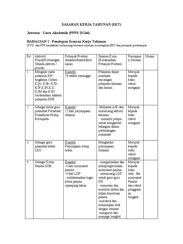 . Contoh Sasaran Kerja Tahunan SKT 2017. Contoh Sasaran Kerja Tahunan SKT GuruUmum warga guru sedia maklum yang bermula tahun 2015 Laporan Penilaian Prestasi Tahunan LNPT akan dilaksanakan secara. This motion has been signed by 11 Members.